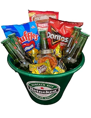 Quer surpreender alguém especial? Esta cesta é o presente perfeito para celebrar com estilo e sabor! O icônico balde Heineken, que mantém as cervejas geladas por horas, vem acompanhado de uma seleção irresistível de petiscos deliciosos, tornando qualquer momento inesquecível.