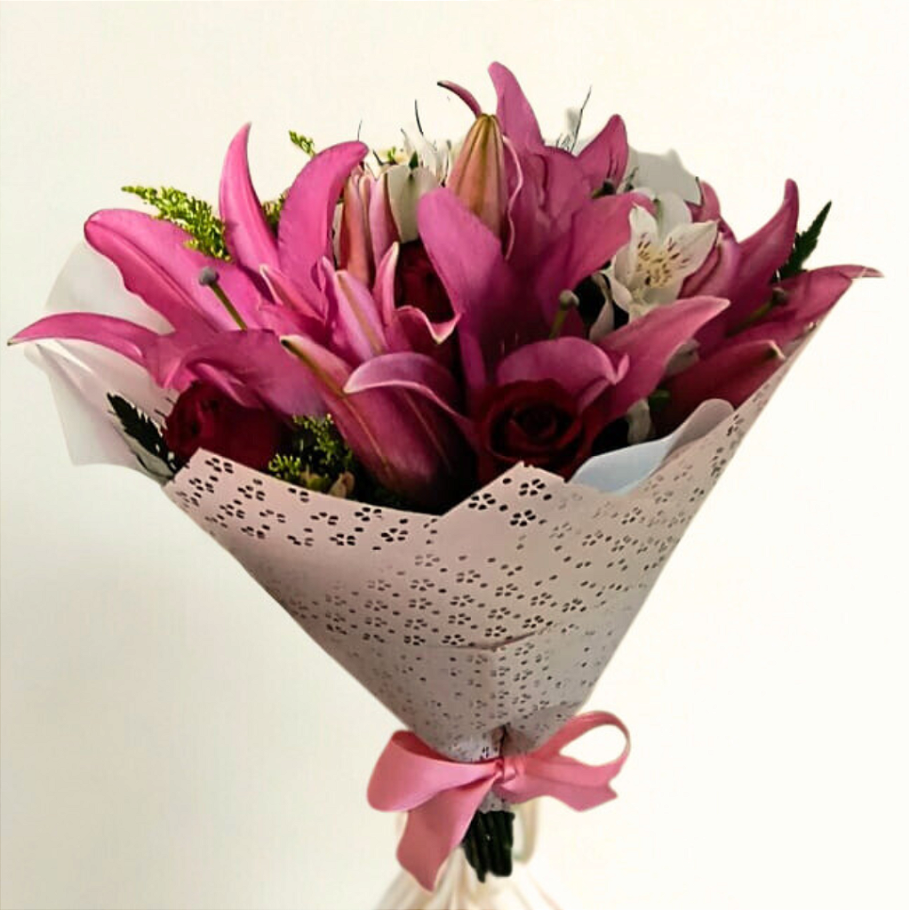 Surpreenda com a sofisticação e o perfume delicado do nosso Buquê de Lírios frescos. Uma escolha encantadora para quem deseja transmitir amor, gratidão, pureza e admiração, com um toque de classe.