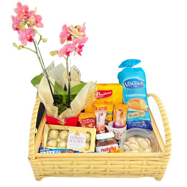 Cesta de Café da Manhã e Orquídea