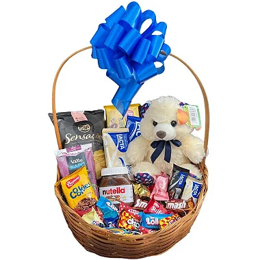 Cesta de chocolate com ursinho